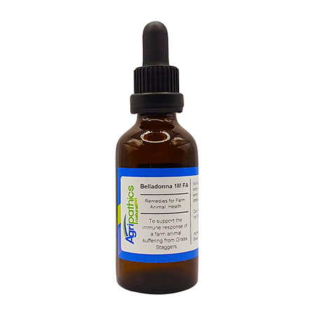 Belladonna 1M is a homeopathic remedy that assists a farm animals natural immune response when they are suffering from an acute grass staggers episode. When the animal is showing signs of convulsions, dilated pupils and delirium.