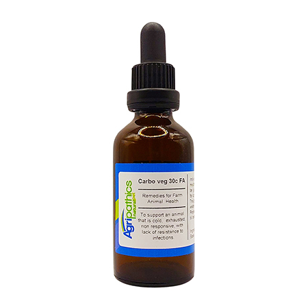Carbo veg 30c is supplied in liquid form, which we find to be the easiest and most effective method of administration for all farm animals. Homoeopathic remedies can be given directly into the animal's mouth, added to feed, or mixed into drinking water. All methods are equally effective.