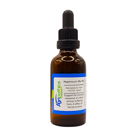 Hypericum is a homeopathic remedy that has a wonderful affinity with the nerves, it is quite often referred to as 'Arnica of the nerves'. Will help the immune response of an animal that is suffering from facial and spring eczema effects.