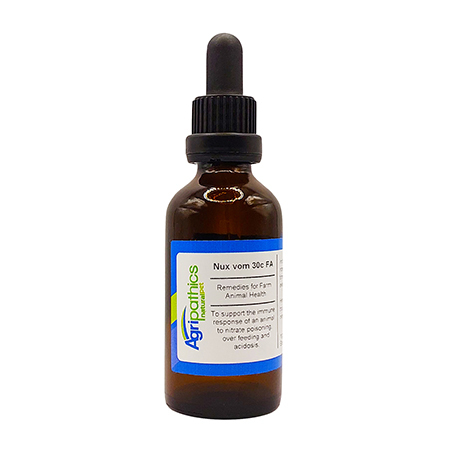 Nux Vom 30c is supplied in liquid form, which we find to be the easiest and most effective method of administration for all farm animals. Homoeopathic remedies can be given directly into the animal's mouth, added to feed, or mixed into drinking water. All methods are equally effective.