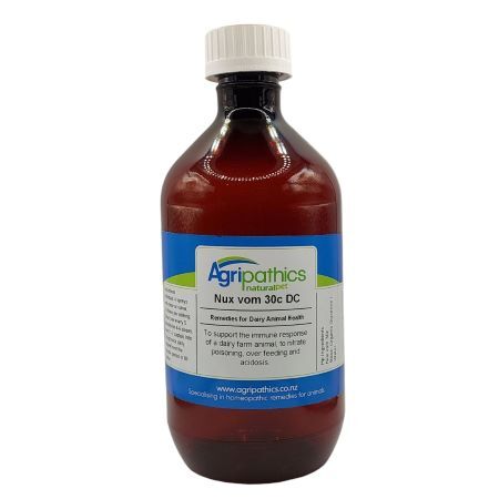 To assist the normal immune response of a dairy cow or farm animal that is suffering from nitrate poisoning, has over fed or has acidosis. Nux Vomica is a homeopathic remedy that has an affinity with the gut and digestive tract and also assists with poisoning and toxicity.